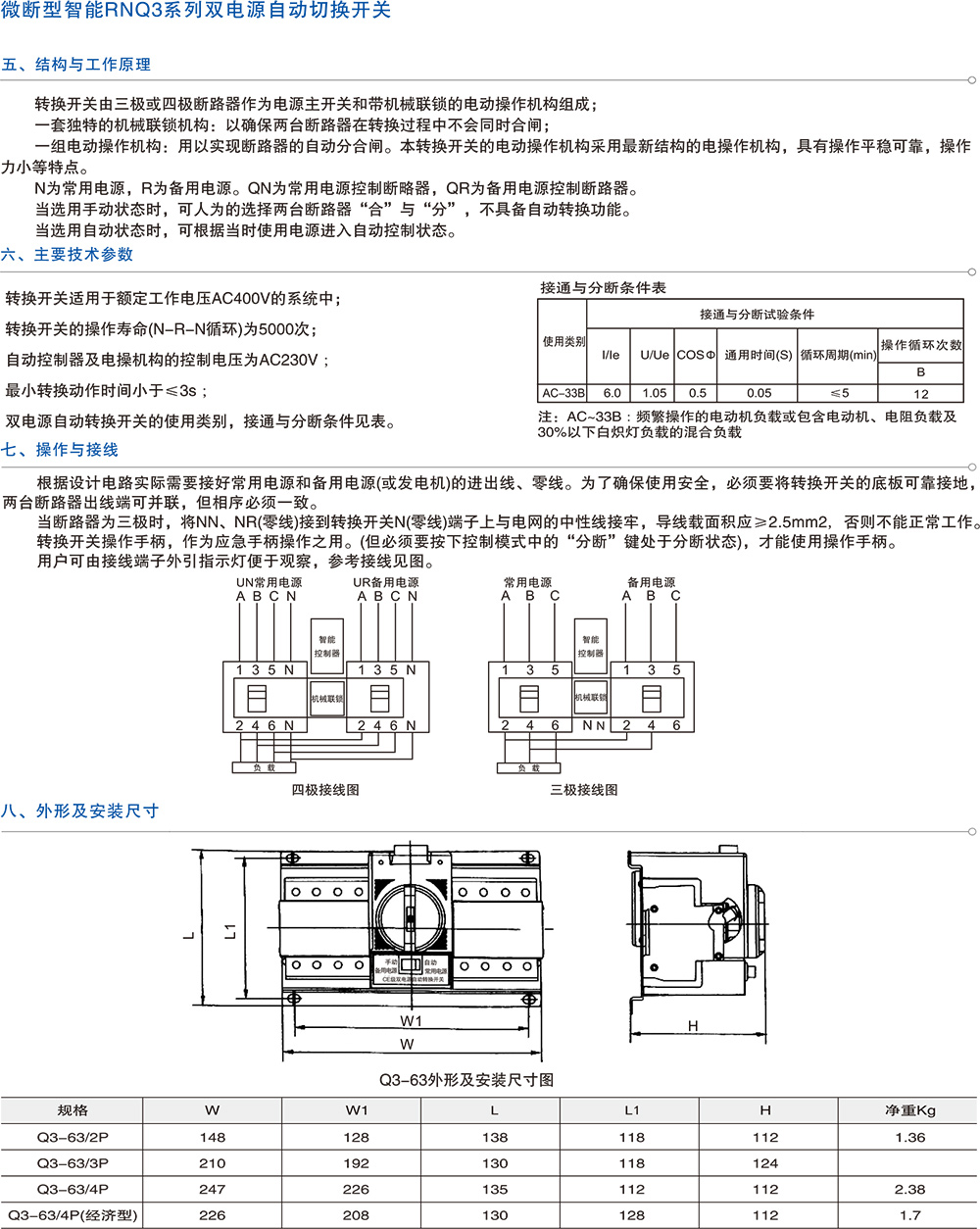 微斷型智能RNQ3系列雙電源自動(dòng)切換開關(guān)